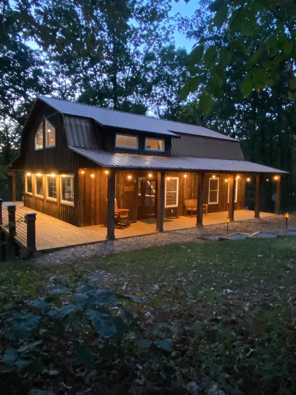 Brand new Cabin for 2! Come enjoy this cozy cabin that sits on 20 acres with walking paths in the beautiful Rockbridge area of Hocking Hills. The cabin has a King Bed with end tables, couch with recliners on each end, Kitchen (including full size Refrigerator, Full size Stove and Above the Range Microwave). The full bath has an on demand extra heater to stay cozy warm in the winter and includes a 5' Shower, vanity and toilet. The cabin also has an endless hot water tank, so you don't run out of hot water. The deck has a Pavilion with a hot tub, Sitting Areas and a Grill for your convenience. There is also a separate firepit area. Close to all the parks!